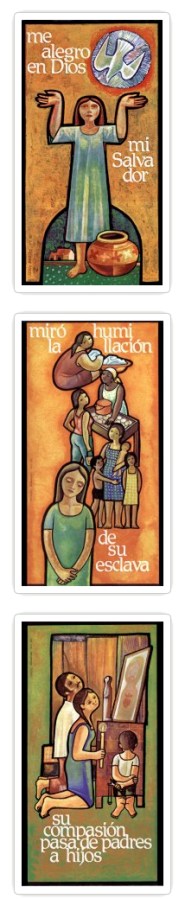 Se alegra mi alma con la grandeza del Señor, y mi espíritu festeja a Dios mi salvador, porque se ha fijado en la humildad de su sierva, y en adelante me felicitarán todas las generaciones, porque el poderoso ha hecho grandes cosas por mí, su nombre es santo. Su misericordia con sus fieles se extiende de generación en generación.