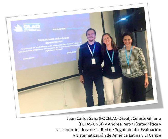 En este marco, Celeste Ghiano, integrante del PETAS, participó en el Panel: “Investigación en evaluación: espacio para el desarrollo de orientaciones que promuevan una gobernanza sostenible y basada cambio de paradigmas” junto a la vicecoordinadora de la ReLAC (Andrea Peroni) y el representante de DEval para América Latina (Juan Carlos Sanz), con su ponencia: “Capacidades individuales en evaluación: incidencia de los Estándares de Evaluación para América Latina y el Caribe en los programas de formación en Evaluación de Políticas Públicas vigentes en la región”