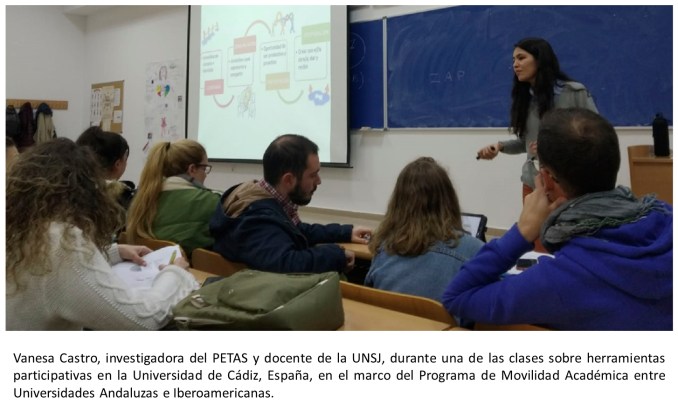 En el marco del Programa de Movilidad Académica entre Universidades Andaluzas e Iberoamericanas promovido por la Asociación Universitaria Iberoamericana de Posgrado (AUIP), y junto con el apoyo del Programa de Movilidad de la UNSJ, nuestra colega del PETAS, Vanesa Castro, realizó una estancia de investigación en la Universidad de Cádiz (UCA), España, entre los meses de diciembre del 2019 y enero del 2020, participando en diversas actividades como doctoranda y docente de la UNSJ.