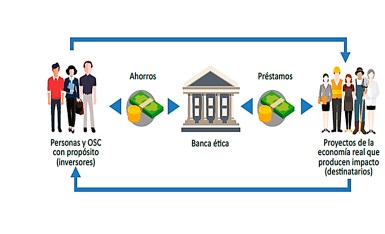 Banca Ética. En la banca ética, las instituciones financieras realizan intermediación financiera a partir de ahorristas interesados en invertir en proyectos de la economía real.