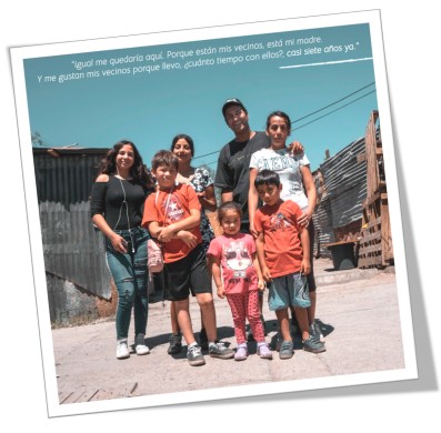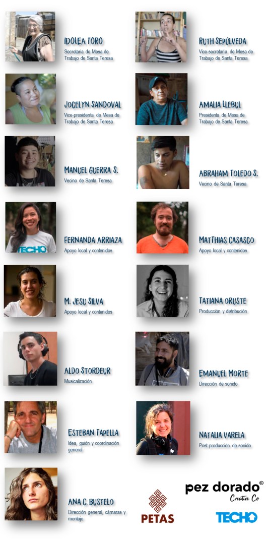 Con la excelente dirección de Ana Clara Bustelo, de la productora PezDorado y el trabajo de un equipo de jóvenes entusiastas, logramos terminar el rodaje a inicios de este año. A través del testimonio íntimo de quienes habitan el territorio, a quienes sumamos como parte del equipo, el documental narra las experiencias de organización, lucha y esperanza de estas comunidades, centenas de ellas apoyadas por TECHO y su ideario de que los y las habitantes sean los protagonistas de la transformación de sus territorios, generando vínculos entre el voluntariado y la comunidad.