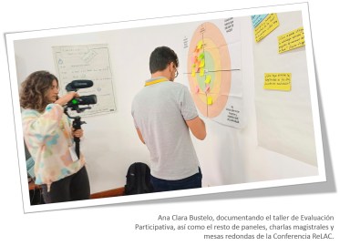Ana Clara mantuvo actividades intensas durante toda la semana, registrando testimonios y realizando filmaciones de múltiples actividades de la conferencia, las que alimentarán los proyectos de investigación del PETAS sobre la realidad de la evaluación en la región.