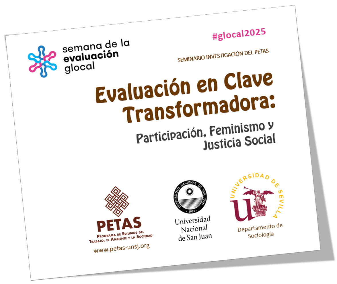 El fortalecimiento de capacidades para la evaluación participativa (EP) es uno de los ejes centrales del Proyecto de Desarrollo Tecnológico y Social 2023-2024, apoyado por la Universidad Nacional de San Juan. Este proyecto, desarrollado en conjunto entre el Programa de Estudios del Trabajo, el Ambiente y la Sociedad (PETAS) y el proyecto Focelac+ para el fomento de una cultura de evaluación y aprendizaje en América Latina con proyección global del Instituto Alemán de Evaluación para la Cooperación al Desarrollo (DEval), tiene como propósito principal fortalecer y contribuir a la sostenibilidad de EvalParticipativa, la Comunidad de Práctica y Aprendizaje en Evaluación Participativa para América Latina y el Caribe.